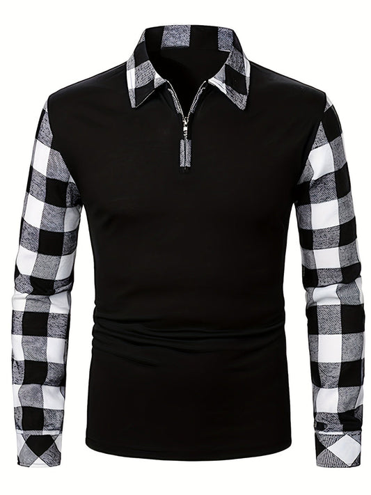 Férfi kockás flanella alkalmi félzip top