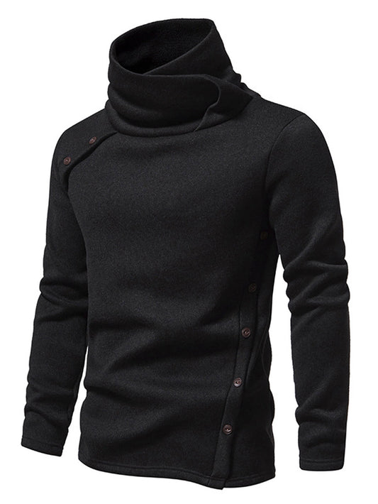 Férfi retro egyszínű alkalmi gombok pulóver