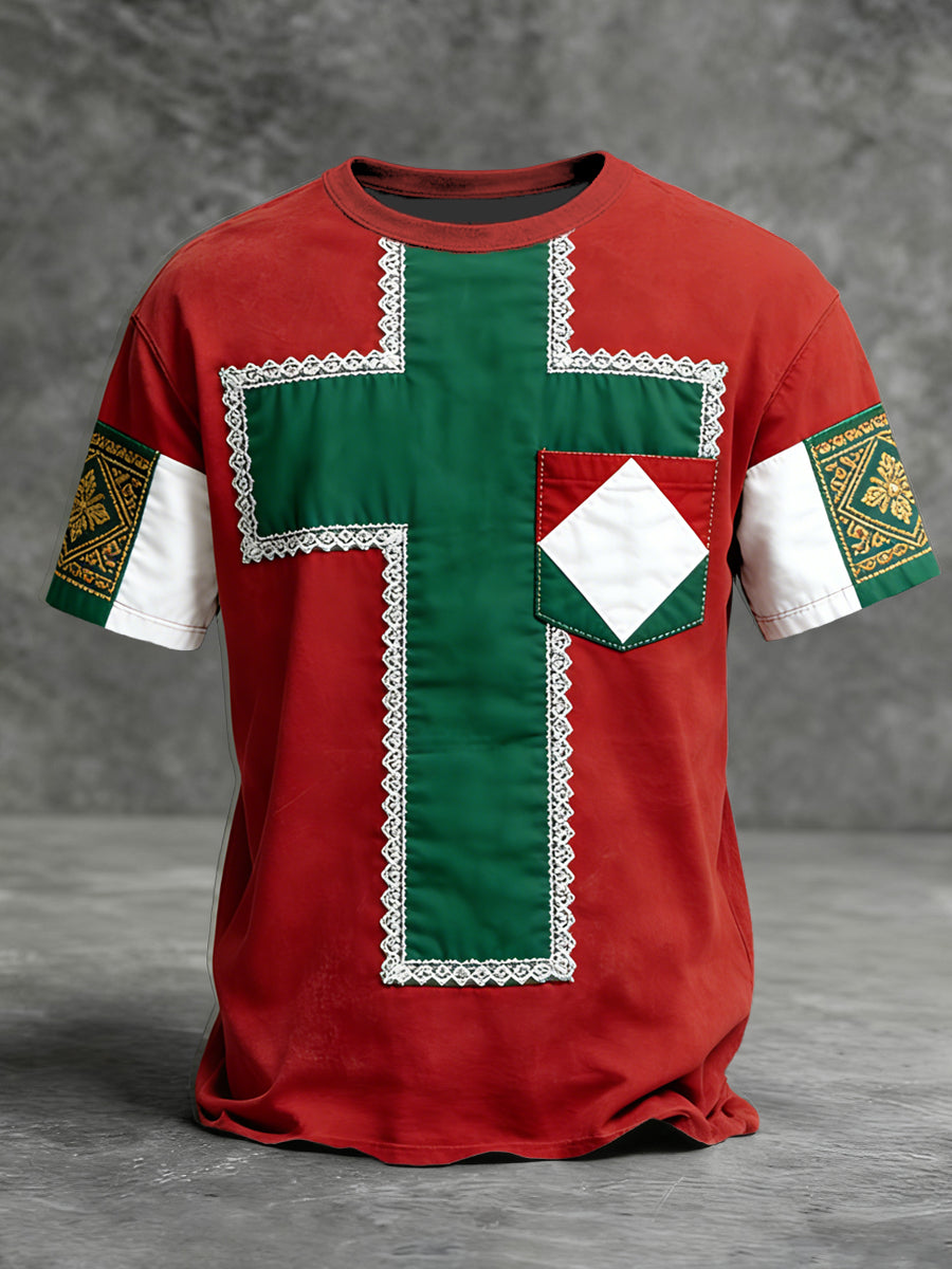 Férfi díszes piros-zöld magyarország kereszt mintás póló
