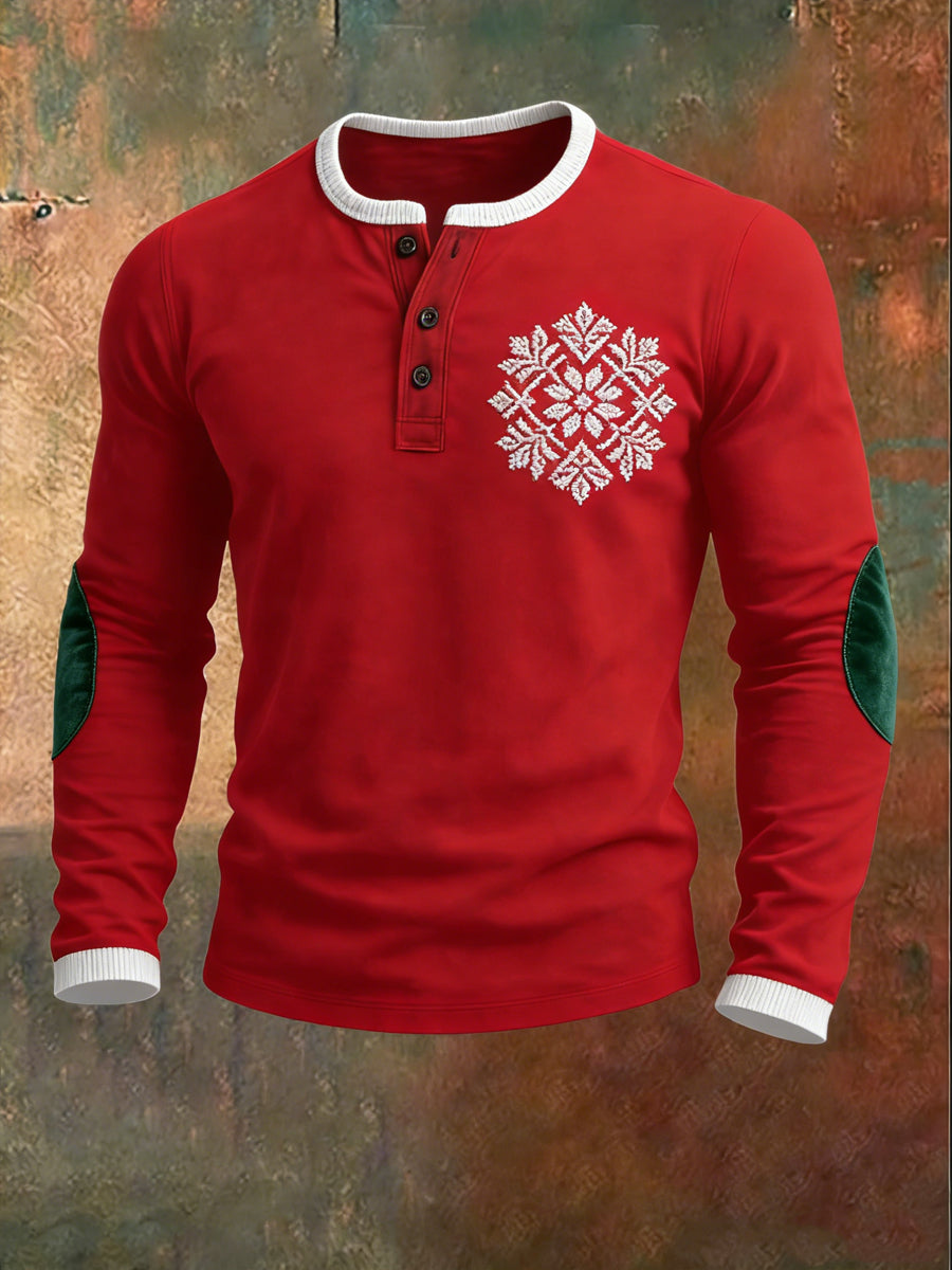 Férfi élénk piros hópehely embléma kontraszt hosszú ujjú