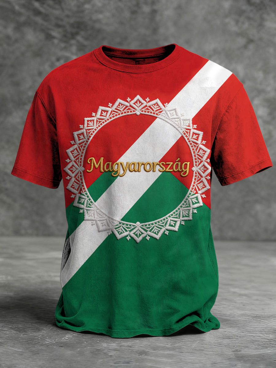Férfi élénk piros-zöld magyarország "magyarország" grafikus póló