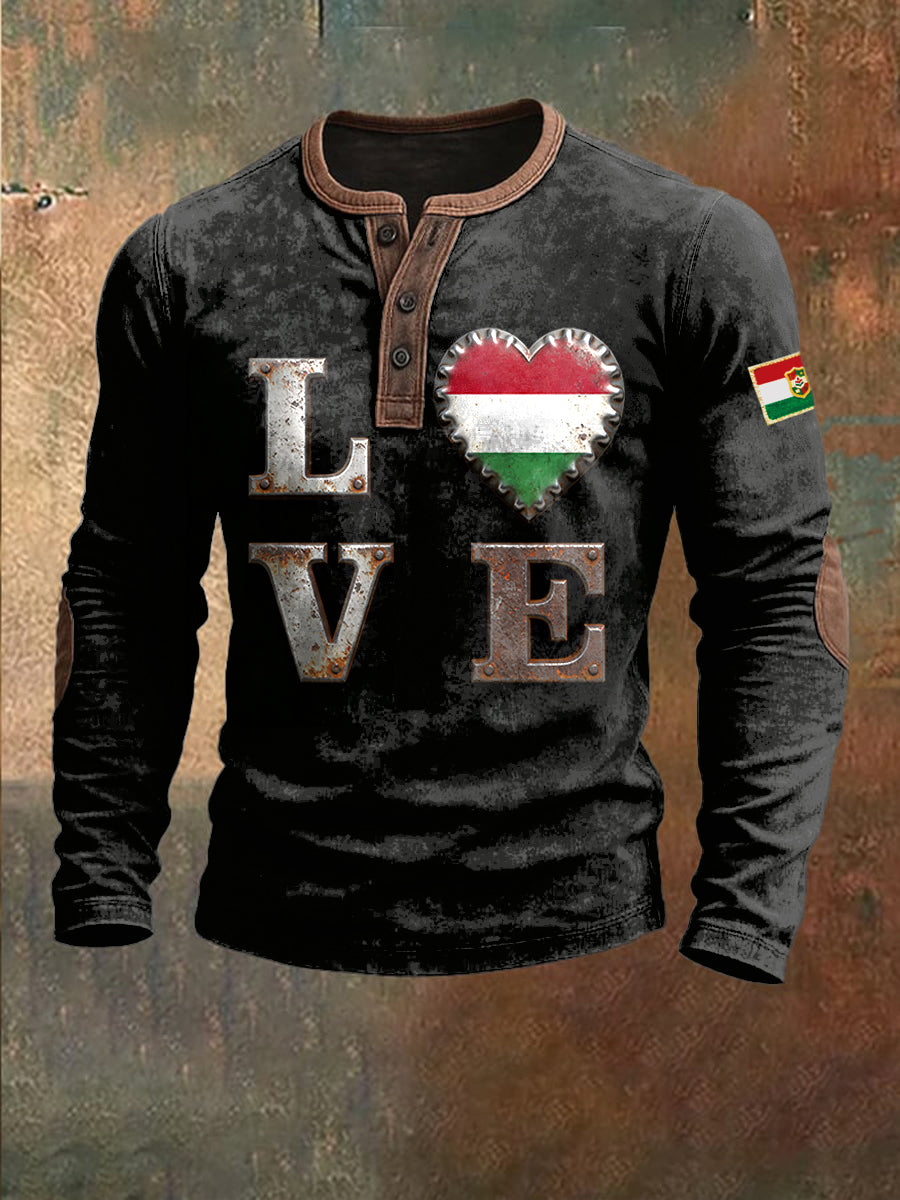 Férfi fekete patchwork pulóver magyarország zászló nyomtatással
