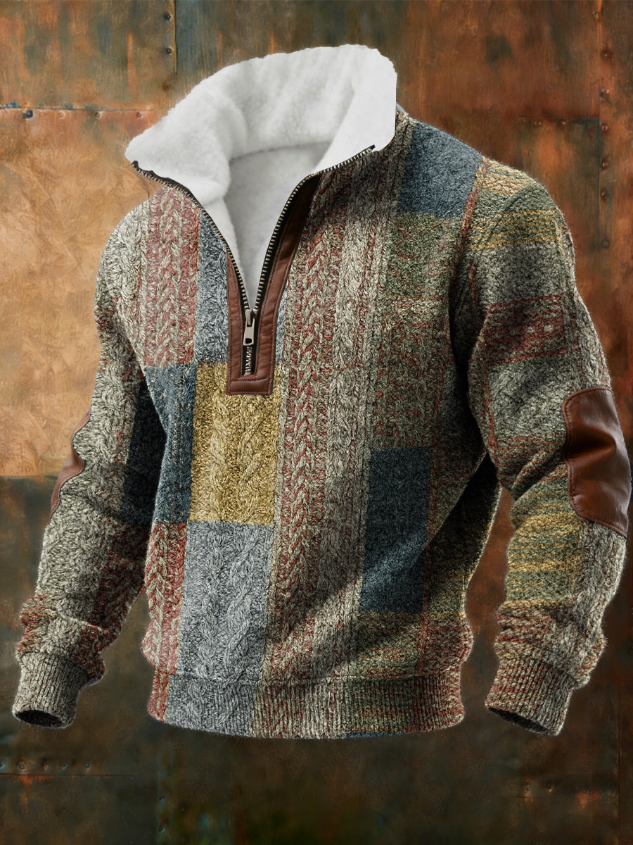Férfi geometriai művészet gyapjú-bélelt pulóver