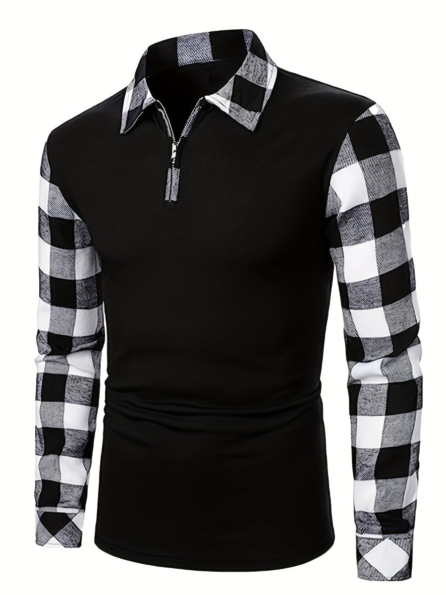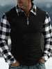 Férfi kockás flanella alkalmi félzip top