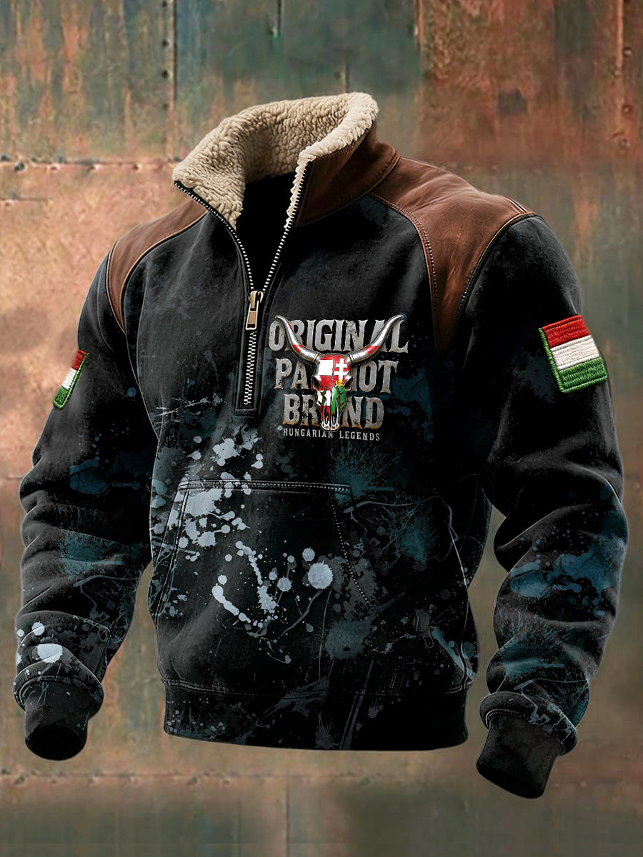 Férfi magyar mitológia bull print állványnyakörv pulóver
