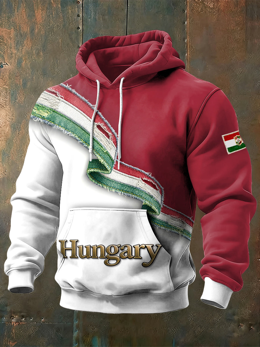 Férfi magyarország zászló patchwork nyomtatás csuklyás pulóver