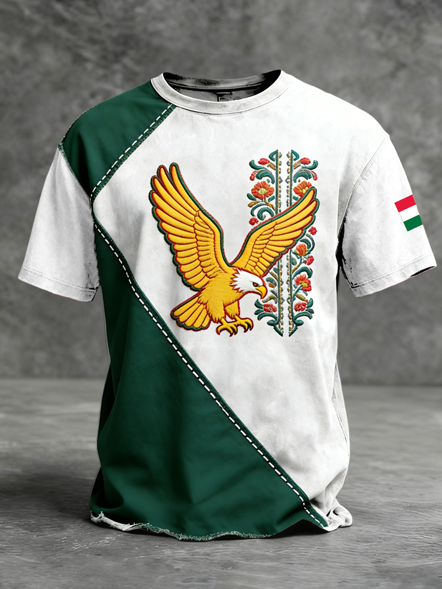 Férfi merész kétszínű magyarország sas és virágos hímzés póló