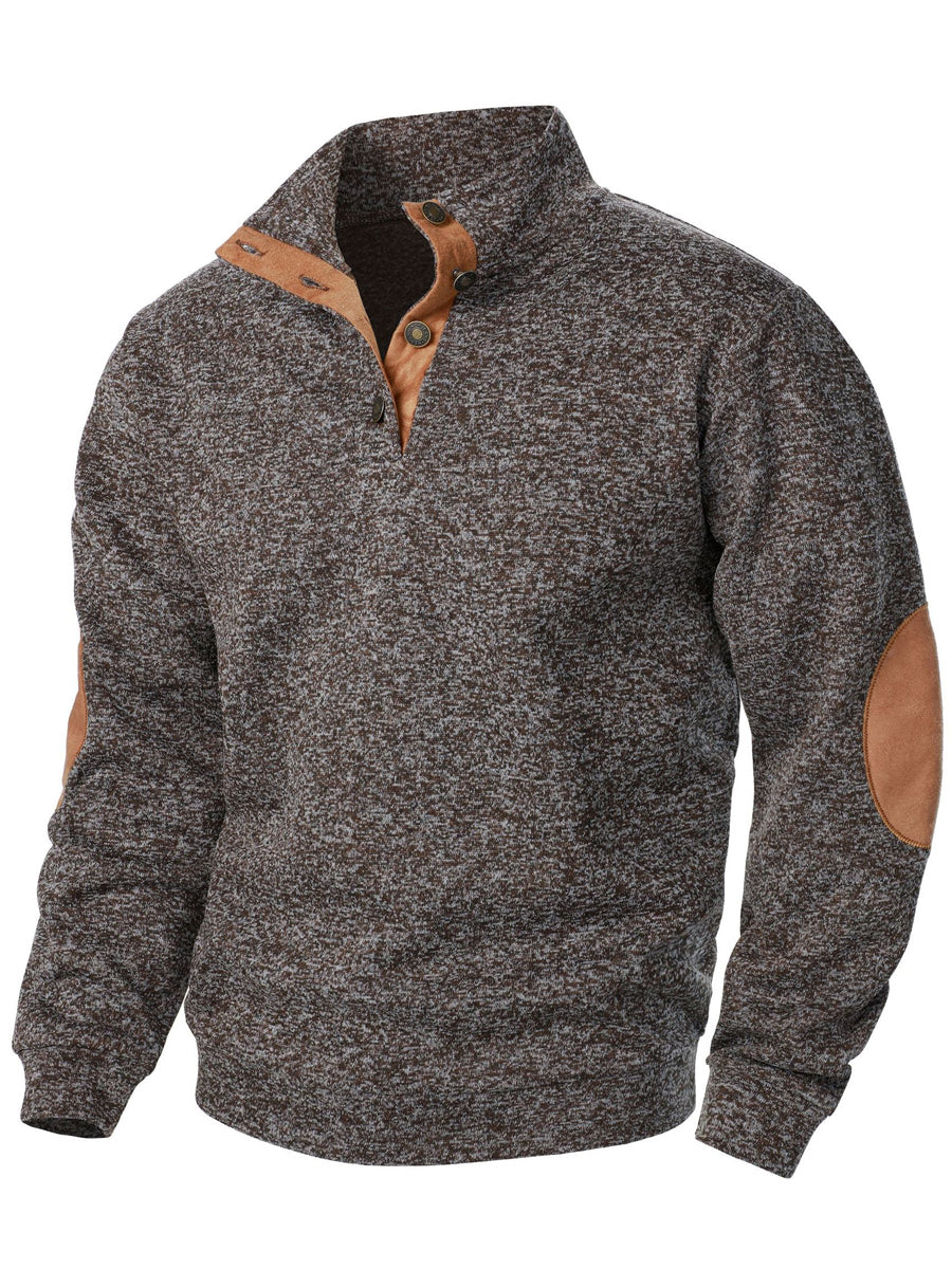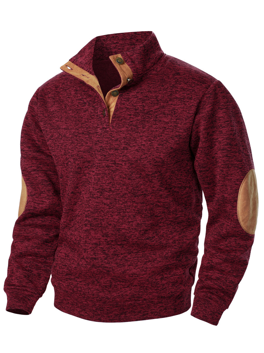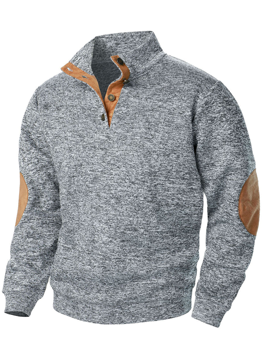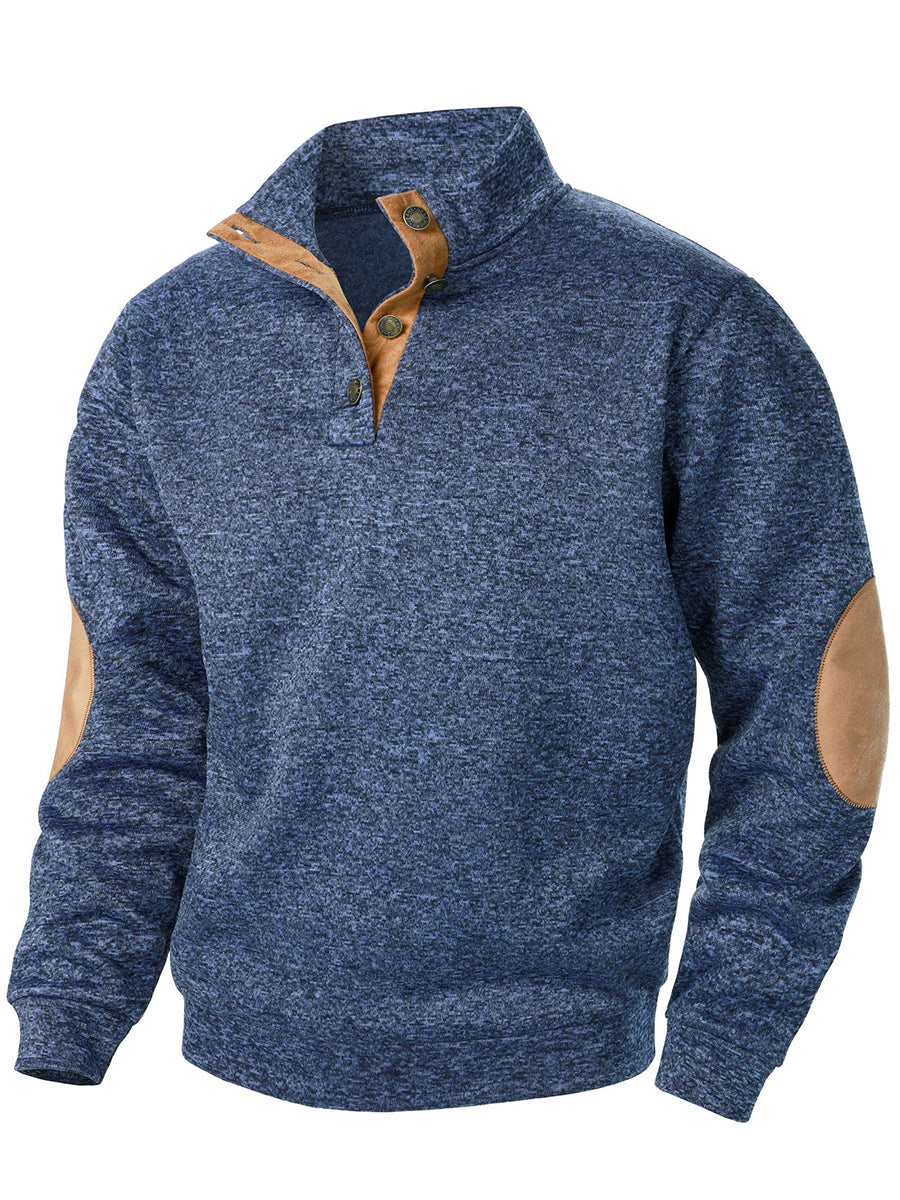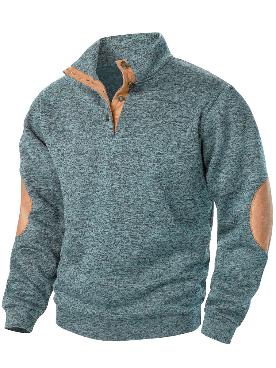 Férfi retro egyszínű alkalmi gombok pulóver