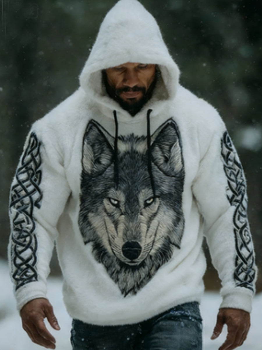 Férfi viking vintage farkas kelta flanella meleg kapucnis