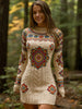 Hölgyek vintage művészi színes etnikai virágos elegáns ruha
