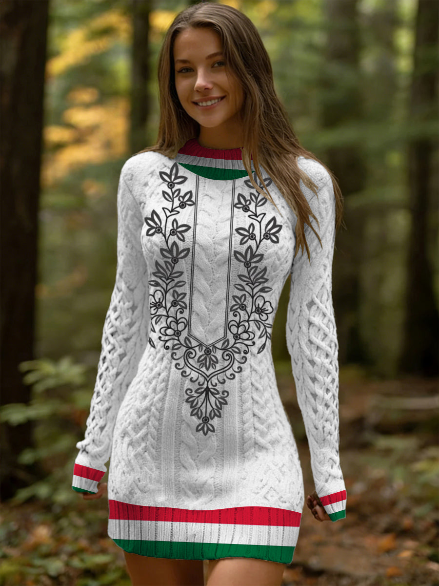Női elegáns magyarország virágminta nyomtatás kötött ruha