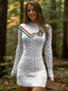 Női fehér magyarország kreatív nyomtatás hosszú ujjú ruha