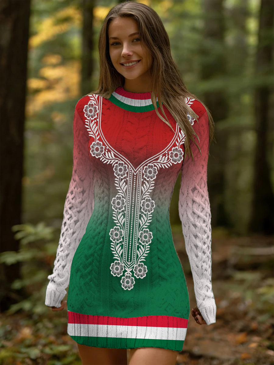 Női feltűnő magyar zászló gradient virágos kötött ruha