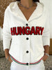 Női hangulatos fehér "magyarország" gyapjú gombos kapucnis