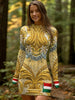 Női magyar opulens hímzett nyomtatás luxus hosszú ujjú ruha