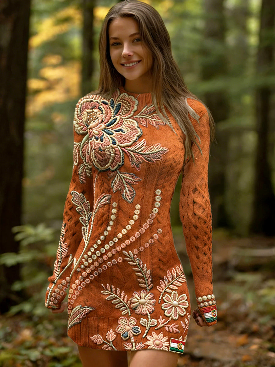 Női magyar virágos hímzés vintage nyomtatás hosszú ujjú ruha