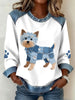 Női szép yorkshire terrier kutya minta farmer patchwork pulóver
