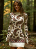 Női vintage etnikai stílus virágos nyomtatás kötött kényelmes és elegáns ruha