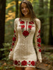 Női vintage etnikai stílusú virágos nyomtatás kényelmes és elegáns ruha