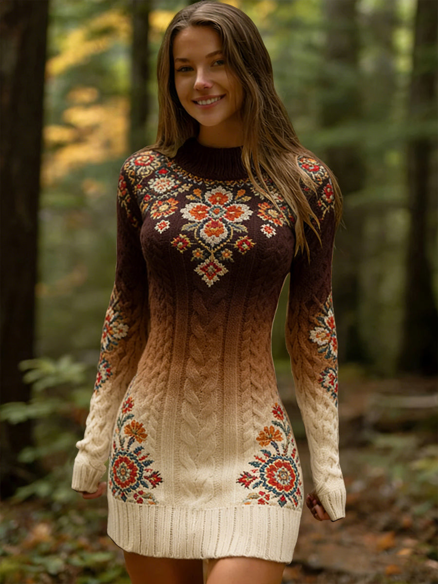 Női vintage etnikai virágos absztrakt gradient elegáns ruha