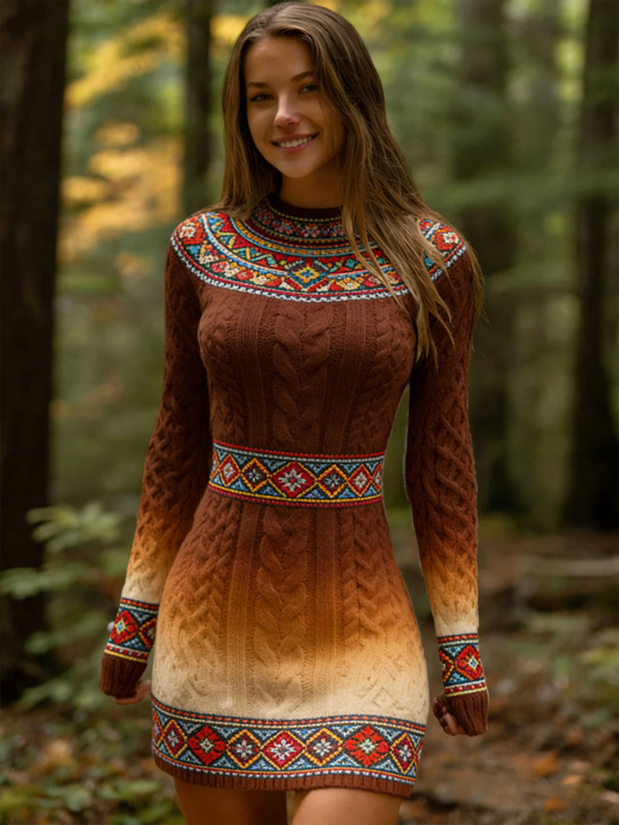 Női vintage gradient etnikai virágos elegáns ruha