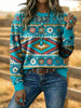 Női vintage nyugati azték művészet pulóver