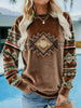 Női vintage nyugati etnikai azték minta alkalmi hangulatos flanella pulóver