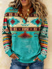 Női vintage nyugati etnikai azték minta alkalmi pulóver