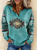 Női vintage nyugati etnikai azték minta alkalmi pulóver