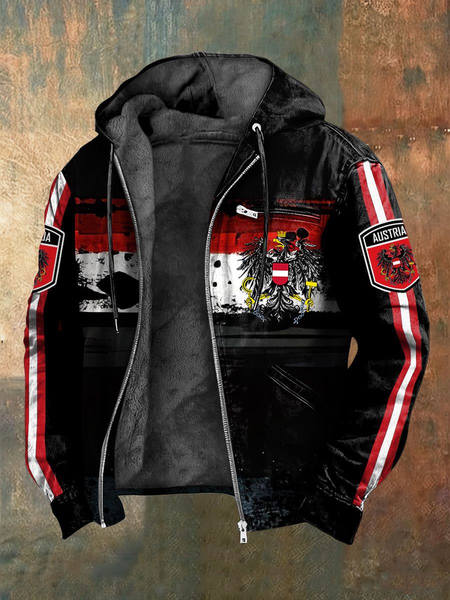 Retro absztrakt osztrák zászló geometriai gyapjú-bélelt csuklyás kabát