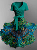 Retro bohém virágos nyomtatott vintage kereszt hajtogatás rövid ujjú két részes midi ruha