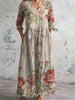 Vintage virág művészet nyomtatás elegáns v-nyak háromnegyed ujjú elegáns midi ruha