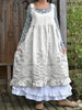 Vintage virágos nyomtatás ujjatlan crewneck gomb-up pamut midi ruha